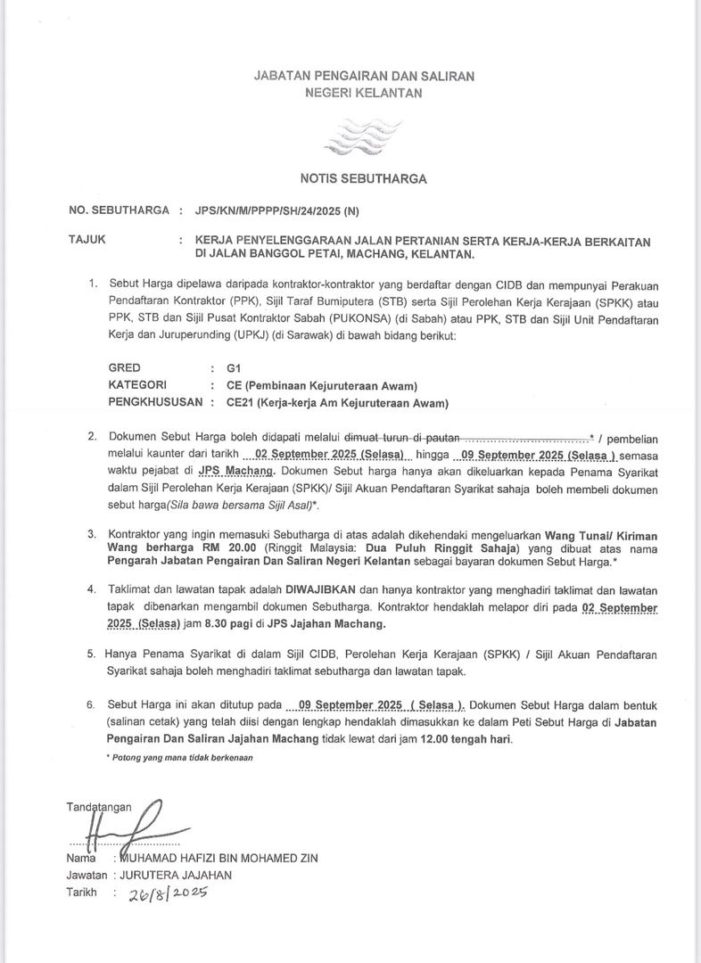 UTAMA PUSAT SUMBER ARKIB ELEKTRONIK Arkib Iklan IKLAN SEBUTHARGA G1 (JPS/KN/M/PPPP/SH/24/2025 (N)) Rose Azida Binti Shamsudin IKLAN SEBUTHARGA G1 (JPS/KN/M/PPPP/SH/24/2025 (N))