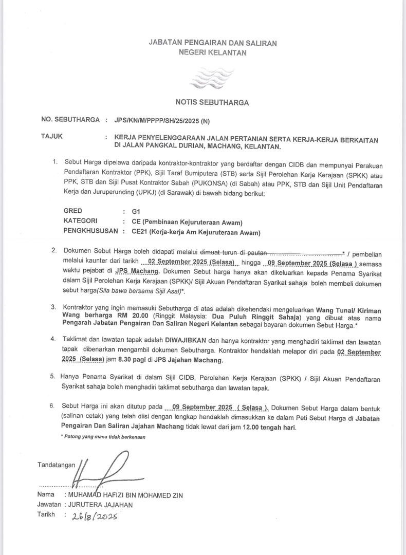 UTAMA PUSAT SUMBER ARKIB ELEKTRONIK Arkib Iklan IKLAN SEBUTHARGA G1 (JPS/KN/M/PPPP/SH/25/2025 (N)) Rose Azida Binti Shamsudin IKLAN SEBUTHARGA G1 (JPS/KN/M/PPPP/SH/25/2025 (N))