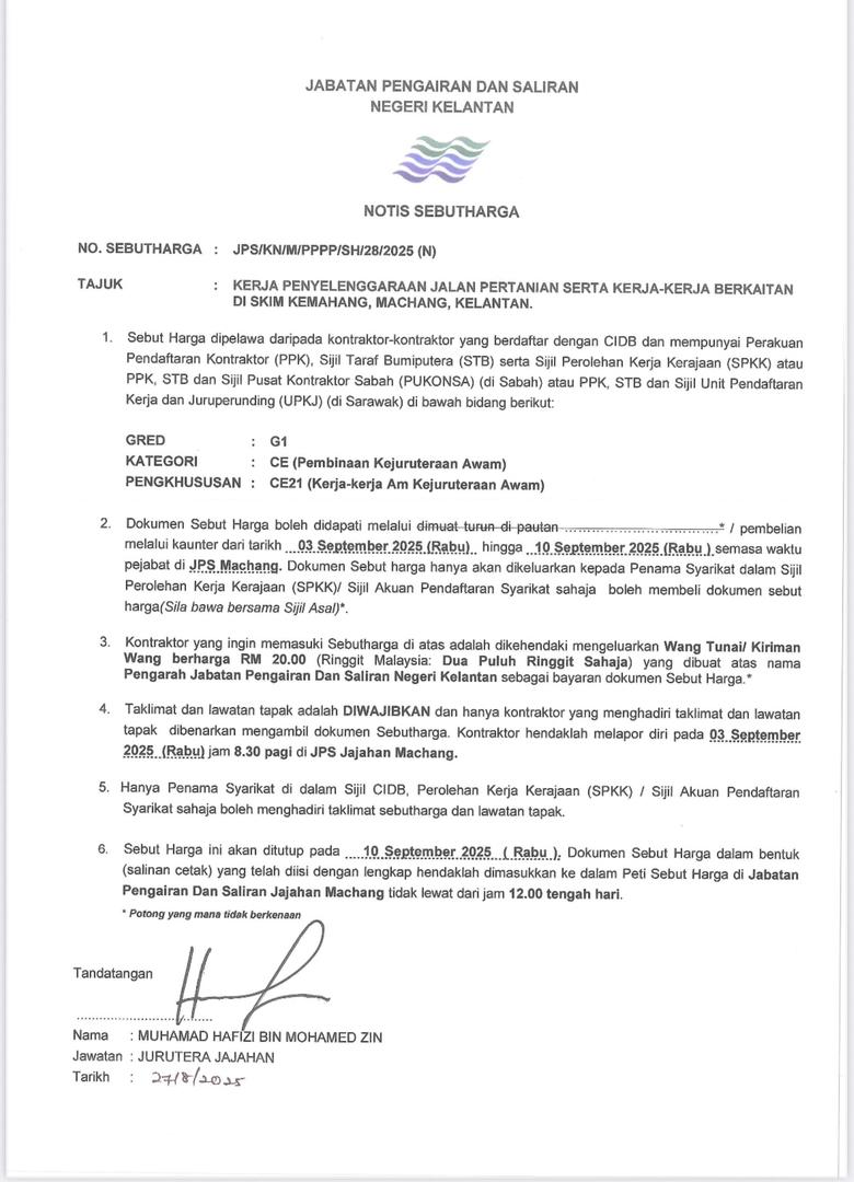 UTAMA PUSAT SUMBER ARKIB ELEKTRONIK Arkib Iklan IKLAN SEBUTHARGA G1 (JPS/KN/M/PPPP/SH/28/2025 (N)) Rose Azida Binti Shamsudin IKLAN SEBUTHARGA G1 (JPS/KN/M/PPPP/SH/28/2025 (N))