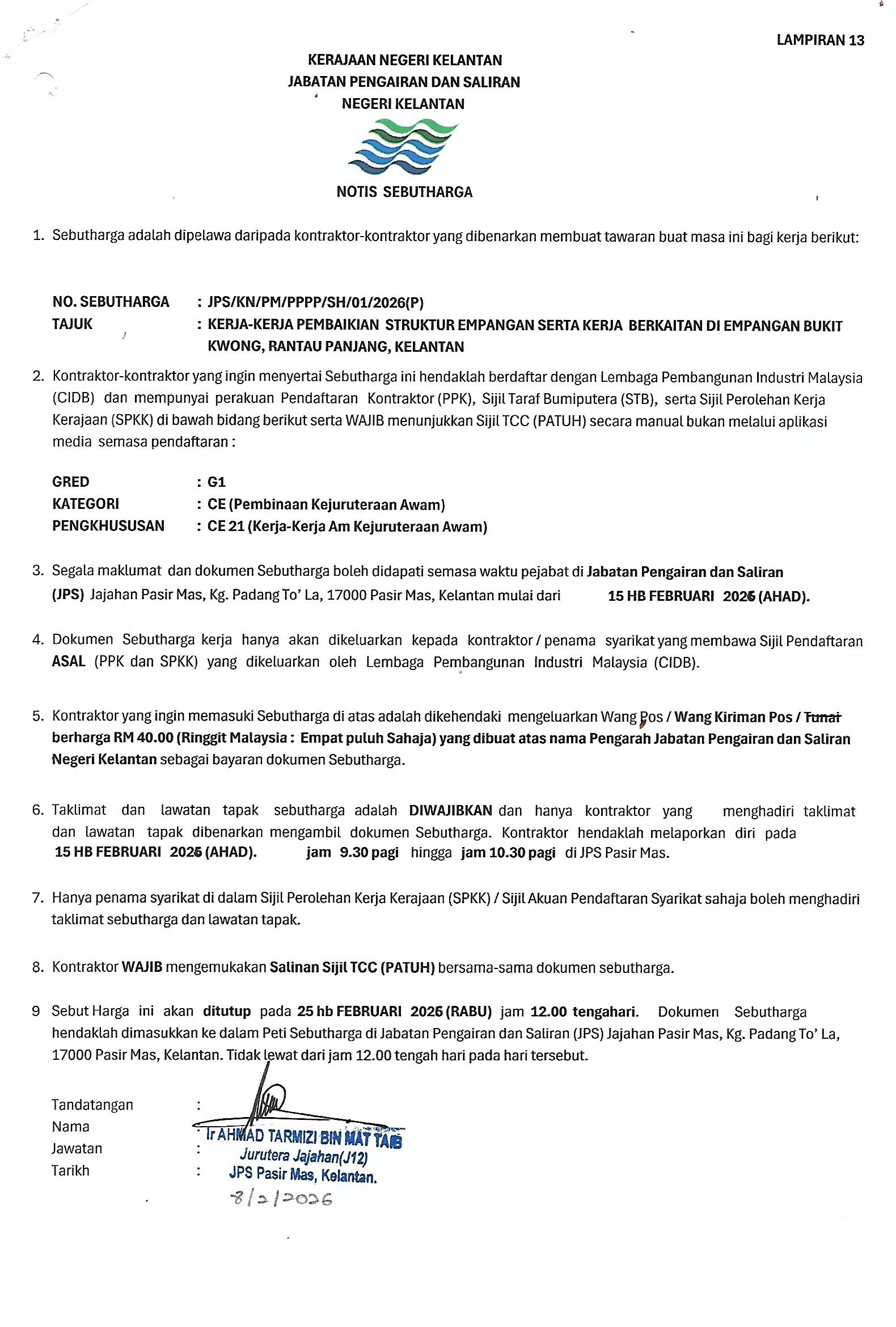 UTAMA PUSAT SUMBER ARKIB ELEKTRONIK Arkib Iklan NOTIS SEBUTHARGA JPS KN PM PPPP SH 01 2026 P Muhammad Faruq Syakirin Bin Shaari NOTIS SEBUTHARGA JPS KN PM PPPP SH 01 2026 P