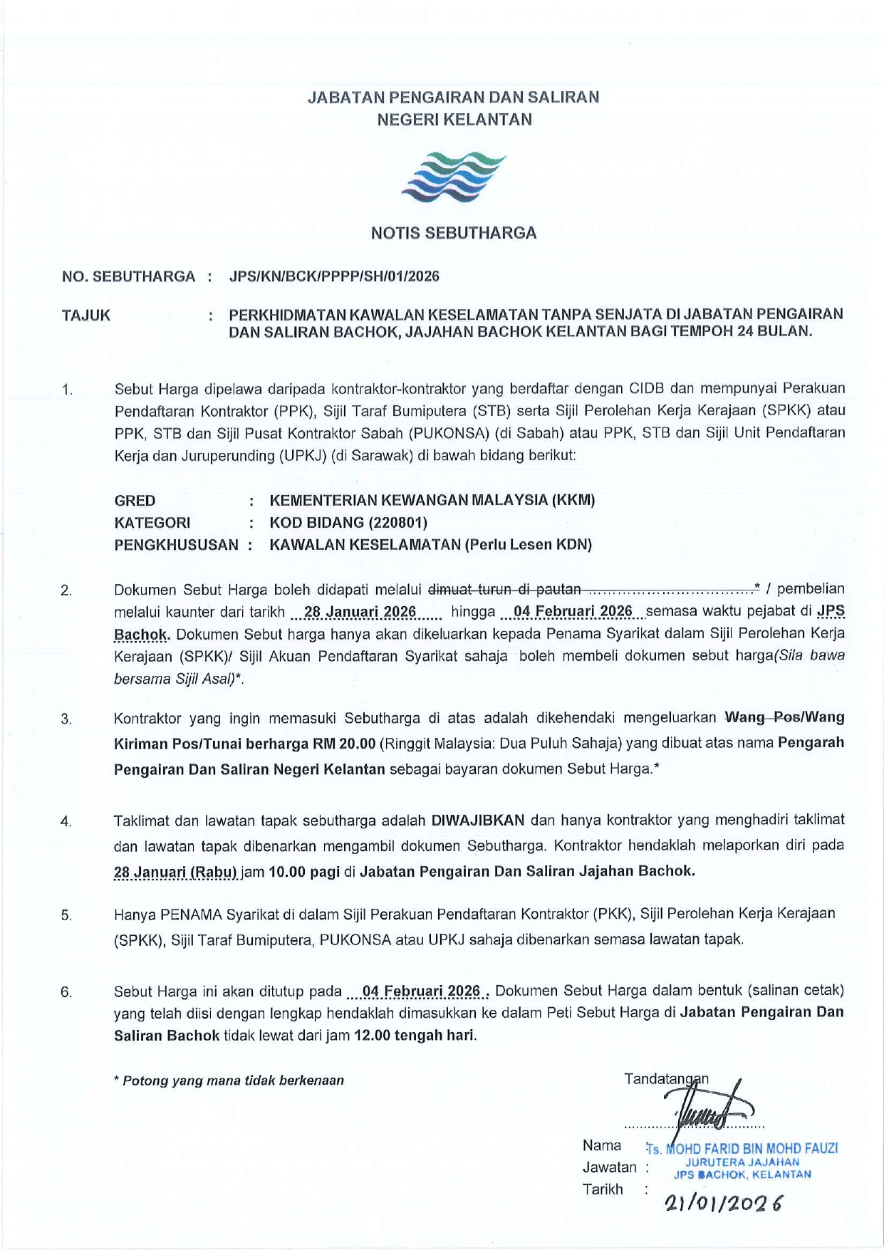 UTAMA PUSAT SUMBER SEBUTHARGA/TENDER/UNDI Iklan IKLAN SEMULA SEBUTHARGA JPS/KN/BCK/PPPP/SH/01/2026 Asma Binti Kassim IKLAN SEMULA SEBUTHARGA JPS/KN/BCK/PPPP/SH/01/2026