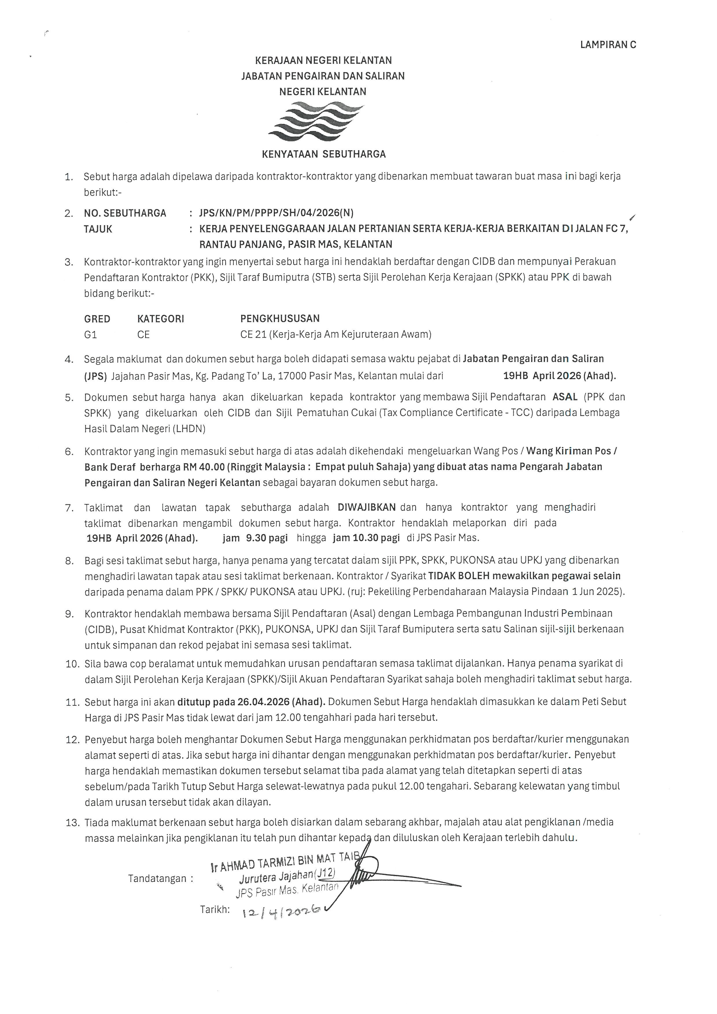 UTAMA PUSAT SUMBER SEBUTHARGA/TENDER/UNDI Iklan JPS/KN/PM/PPPP/SH/04/2026(N) Muhammad Faruq Syakirin Bin Shaari JPS/KN/PM/PPPP/SH/04/2026(N)