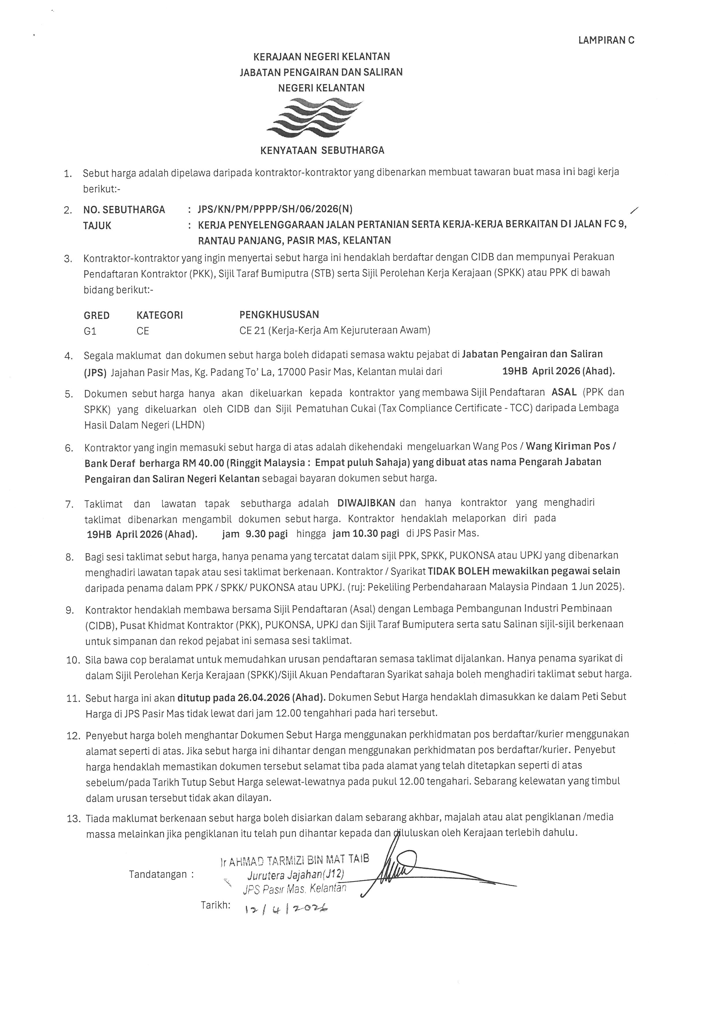 UTAMA PUSAT SUMBER SEBUTHARGA/TENDER/UNDI Iklan JPS/KN/PM/PPPP/SH/06/2026(N) Muhammad Faruq Syakirin Bin Shaari JPS/KN/PM/PPPP/SH/06/2026(N)