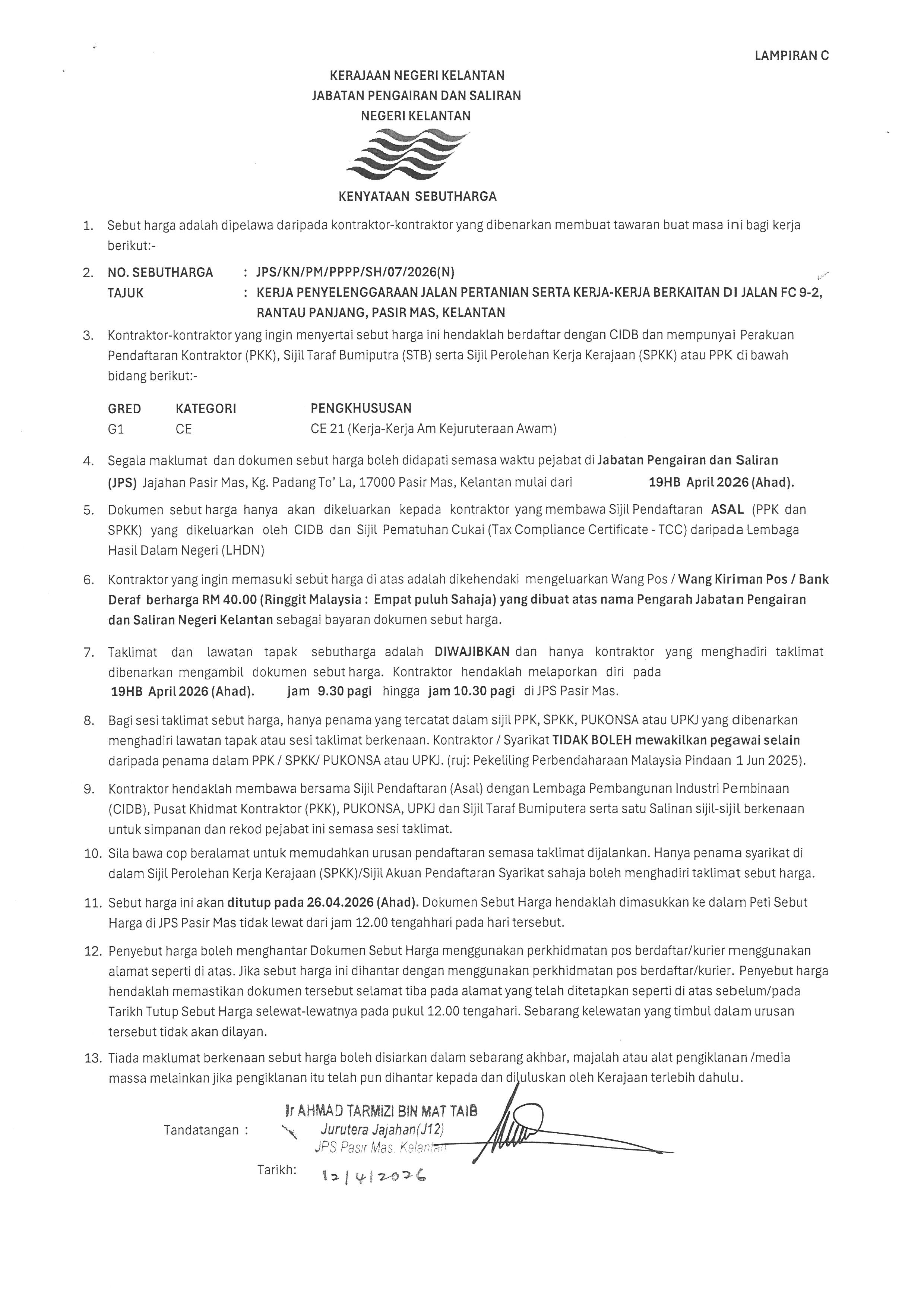 UTAMA PUSAT SUMBER SEBUTHARGA/TENDER/UNDI Iklan JPS/KN/PM/PPPP/SH/07/2026(N) Muhammad Faruq Syakirin Bin Shaari JPS/KN/PM/PPPP/SH/07/2026(N)