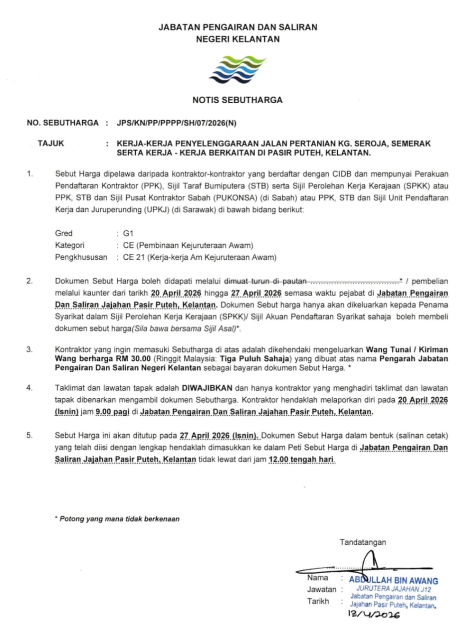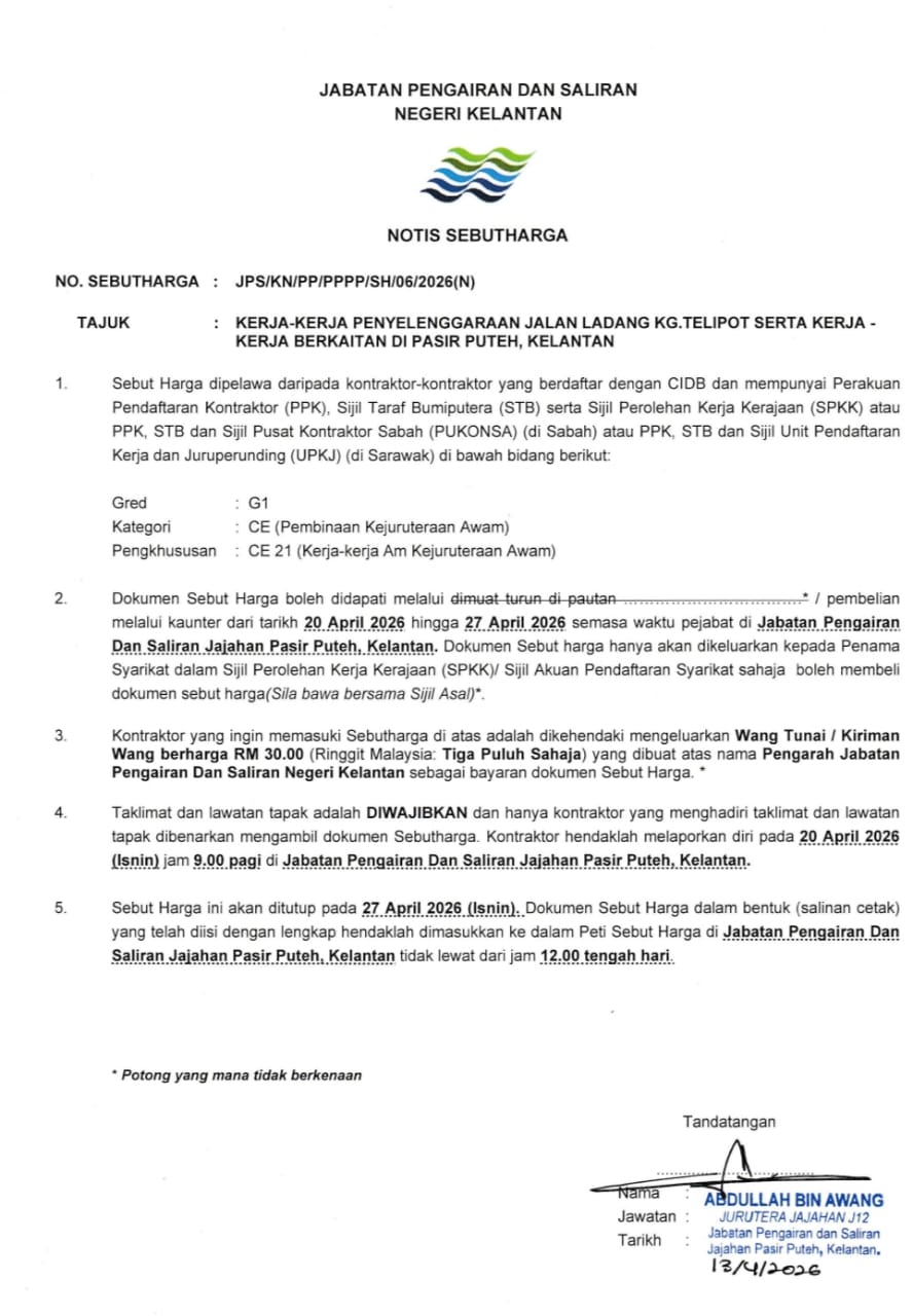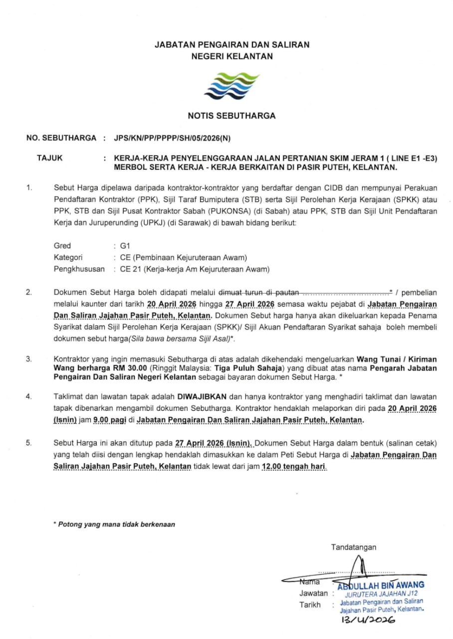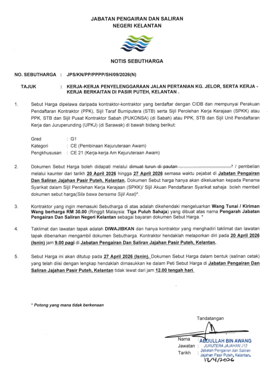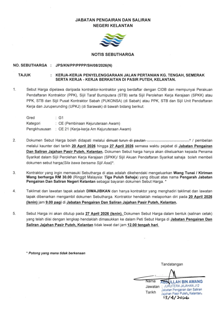 UTAMA PUSAT SUMBER SEBUTHARGA/TENDER/UNDI Iklan JPS/KN/PP/PPPP/SH/05/2026(N), JPS/KN/PP/PPPP/SH/06/2026(N), JPS/KN/PP/PPPP/SH/07/2026(N), JPS/KN/PP/PPPP/SH/08/2026(N) & JPS/KN/PP/PPPP/SH/09/2026(N) Mohammad Zulhafiz Zarith Bin Zaini JPS/KN/PP/PPPP/SH/05/2026(N), JPS/KN/PP/PPPP/SH/06/2026(N), JPS/KN/PP/PPPP/SH/07/2026(N), JPS/KN/PP/PPPP/SH/08/2026(N) & JPS/KN/PP/PPPP/SH/09/2026(N) Download SH052026N, Download SH062026N, Download SH072026N, Download SH082026N, Download SH092026N